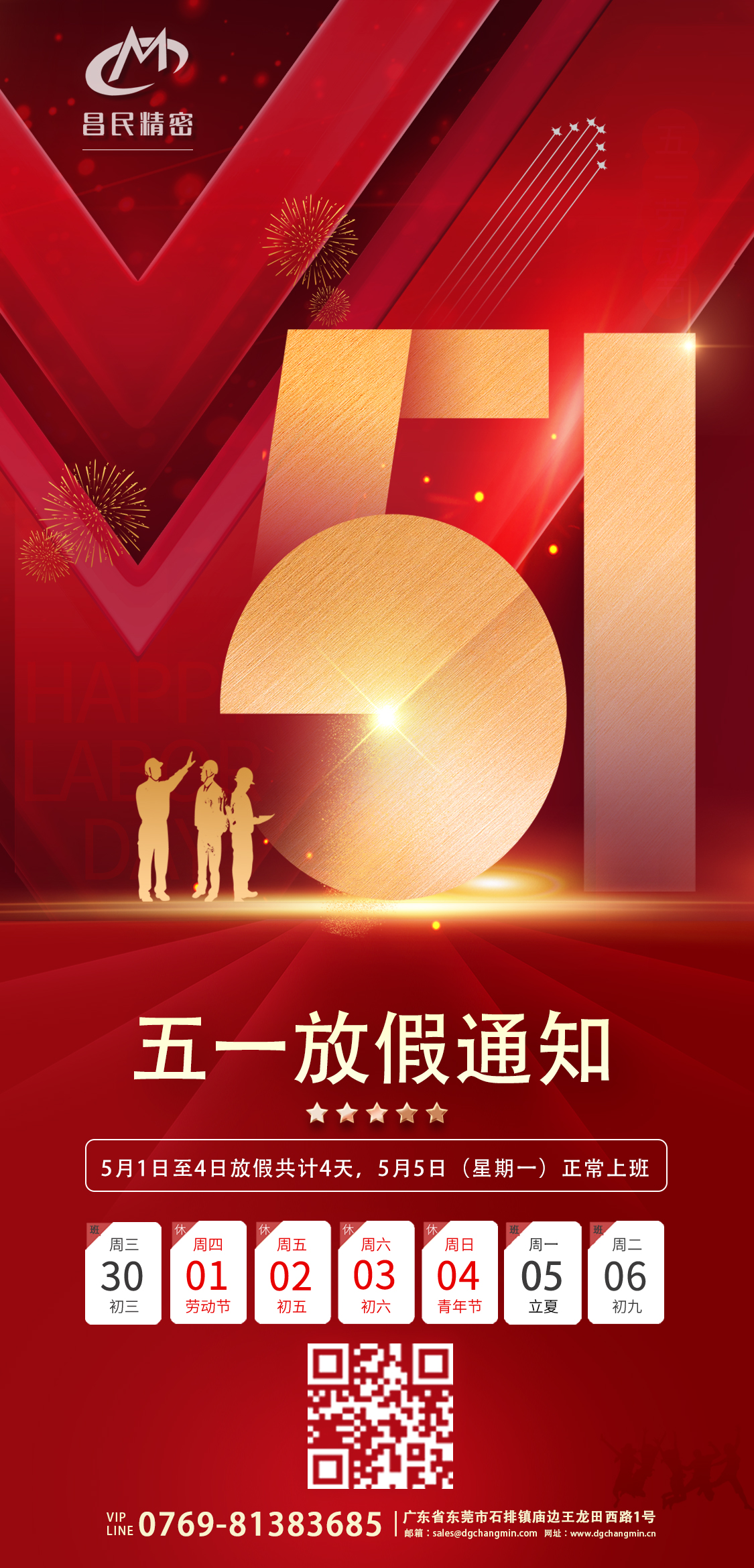 “五一国际劳动节不仅仅是一个休息和庆祝的日子,它在纪念劳动者们通过不懈努力争取到自己合法权益的光荣历史,也在致敬每一位热爱劳动的人!这一天它也在提醒着我们,劳动是人类社会进步和发展的基石,是创造物质财富及精神财富的根本途径,是社会文明进步的重要标志根据国家相关规定并结合我司实际情况放假通知安排如下:202551日至4日共4天,55日(星期一)正常上班。昌民团队致敬每一个努力生活的人,同时祝大家度过一个快乐、安全、有意义的五一假期!